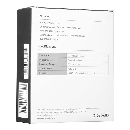 طول کابل 6 متری این محصول به شما این امکان را میدهد که آزادی حرکت بیشتری داشته باشید. الگوی دریافت صدای 360 درجهای SR-ULM7 باعث میشود صدا را به طور متعادل از هر جهتی ضبط میکند و جای نگرانی در خصوص جهت قرارگیری آن بر روی یقه هنگام نصب نیست. میکروفون سارامونیک مدل SR-ULM7 میتواند یک انتخاب کمهزینه، ساده و عالی برای ضبط صدایی مطلوب در رایانه شما باشد.